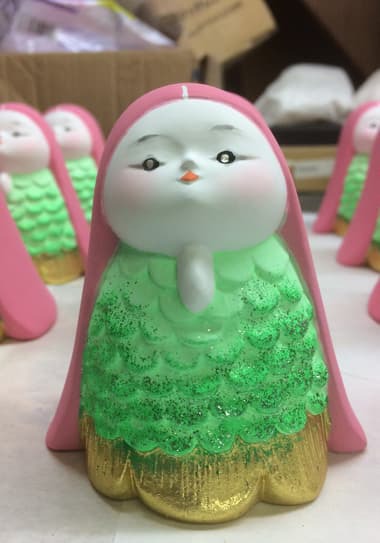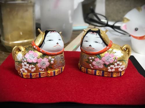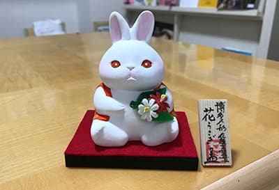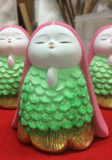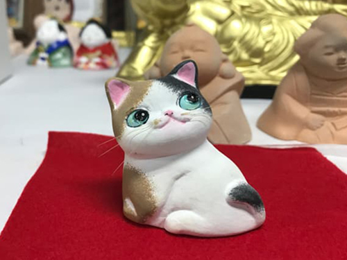 しかも作品のほとんどが掌に乗るほどの可愛いサイズ。1000年以上前に清少納言が「枕草子」に書いた「小きものは、みなうつくし(かわいらしい)」とするところの「うつくしきもの」を生み出している一人が、博多人形の津志田 孟さんなのです。まさしく、博多の伝統工芸としてだけでなく、古(いにしえ)から脈々と伝わる日本人特有の美的感覚も引き継いでいる人形作家と言えるでしょう。