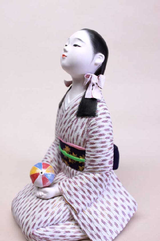博多人形の命はお顔と言われます。津志田 孟さんの繊細な筆使いから生まれた「回想」のお顔ほど端整で清楚な博多人形はそう多くありません。