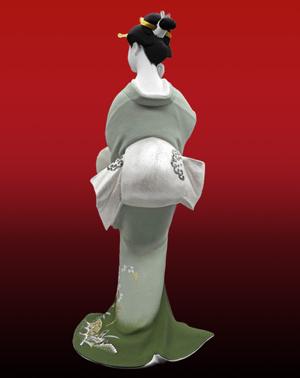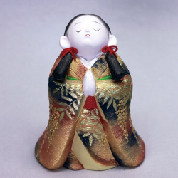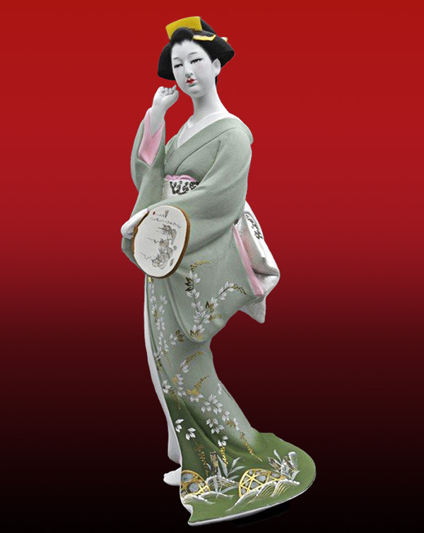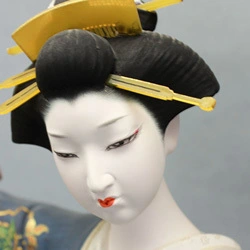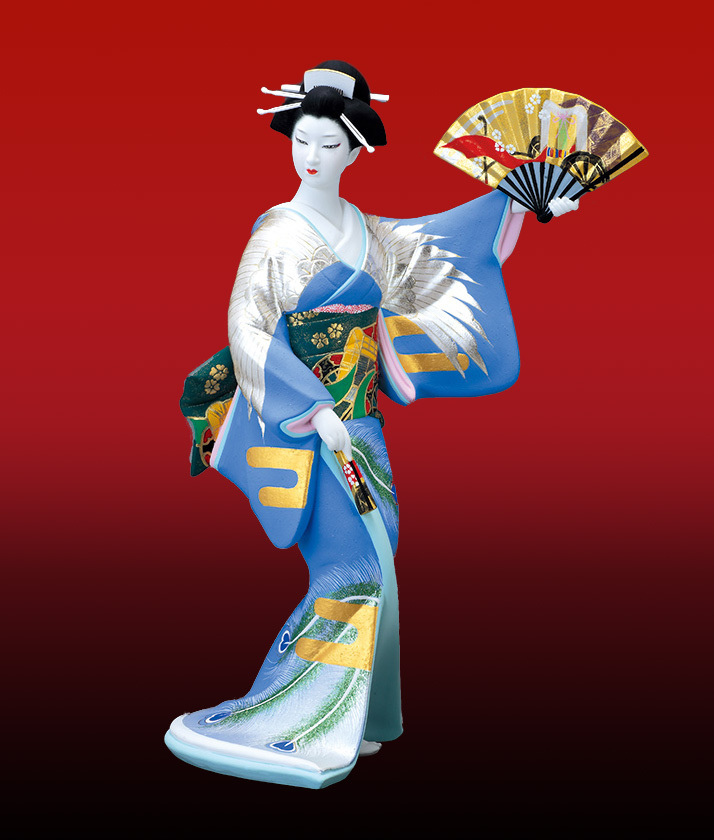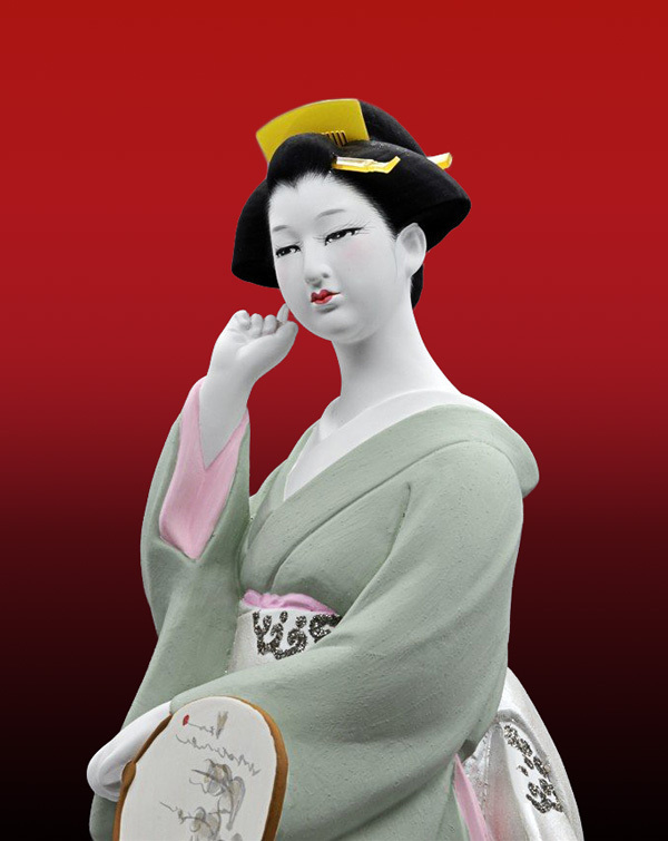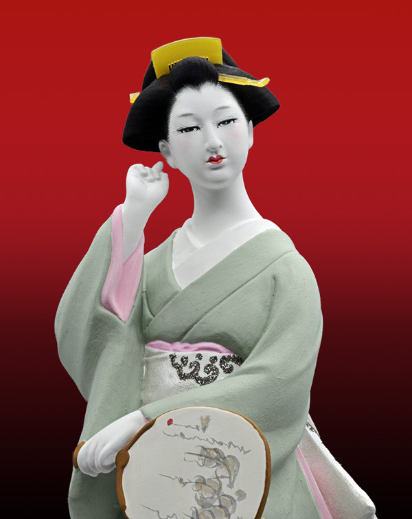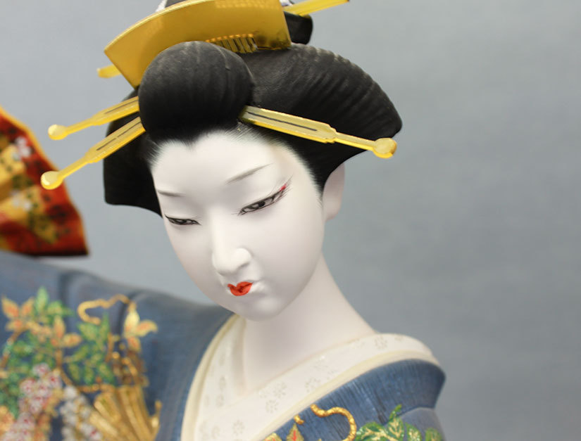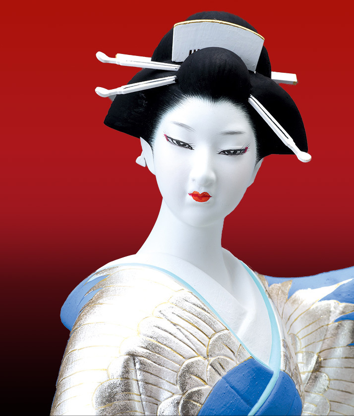 博多人形のお顔は他にない魅力があります。美人ものと言われる女性の人形は、無駄のないすっきりした目や眉が特徴的です。博多人形特有の顔の表現が得意な作家さんも少なくありませんが、津志田 孟さんのお顔もまたとても素敵です。オリエンタルで少しアニメの登場人物のような印象のお顔の人形は、外国の方々にも大変人気が高く、これまでいくつかの姉妹都市締結の記念品の一つにもなっています。また、海外での展示会でも欲しがる人が少なくありません。